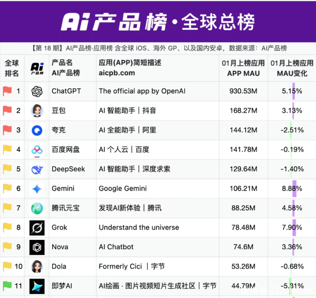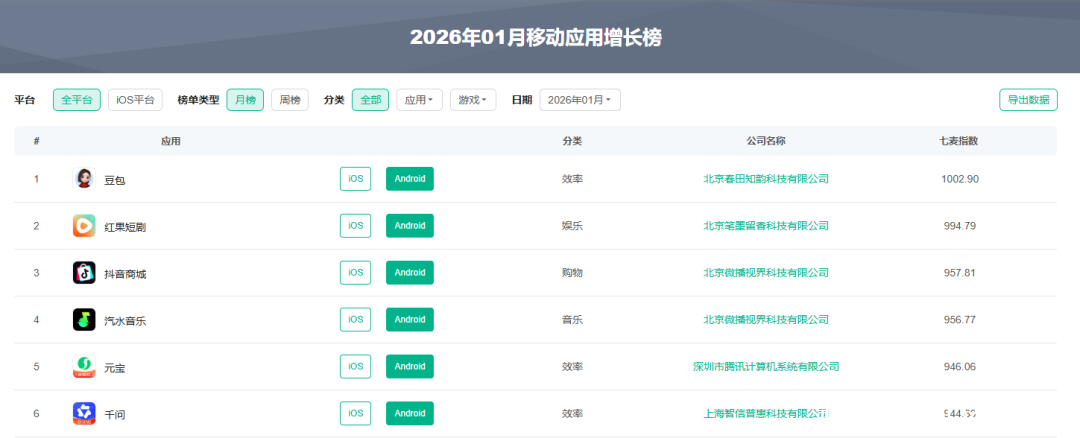 始于2014年的春节红包营销,之是以历经多年仍被大厂沿用,除契合春节破钞场景外,其强用户感知、高搪塞裂变的属性,使其成为现时AI行业高获客老本配景下的最优拉新旅途之一。举例,豆包、元宝、千问在2026年1月移动应用增长榜中,鉴别位列TOP1、TOP5、TOP6。