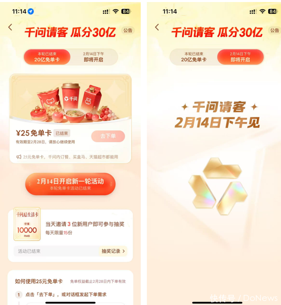 千问聘请“场景深耕与什物免单”路线,以“30亿元春节宴客操办”切入土产货生存。其中枢权柄是25元免单卡,用户只需语音说出“千问帮我点奶茶”,即可完成核销。为撬动拉新,平台种植“邀请新用户再得1张”的机制,最高可累计20张。