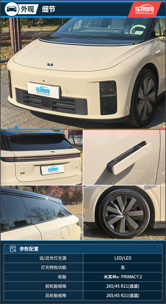 细节方面,评测车的溜背造型和笼罩电动门把手,共同杀青了更低的整车风阻总共进展。选装的21英寸七辐怒放轮毂颇具怒放感,为整车增添了几分时尚新潮的滋味。与之匹配的轮胎来自米其林e·PRIMACY 2,主打静音性和低滚阻,具体规格为265/45 R21。