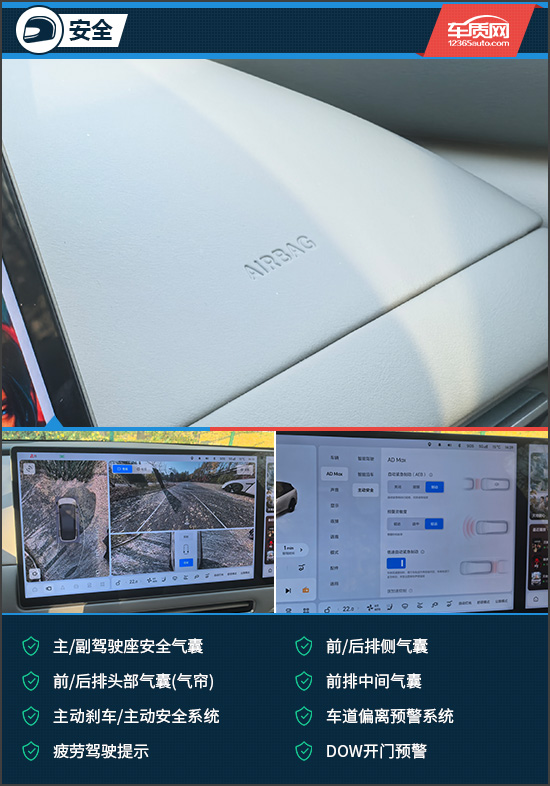评测车汲取高强度车身结构。被迫安全方面,像主/副驾驶座安全气囊、前/后排侧气囊、前排中间气囊等均未缺席;主动安全方面,主动刹车/主动安全系统、车说念偏离预警系统、疲惫驾驶领导等功能也一应俱全。