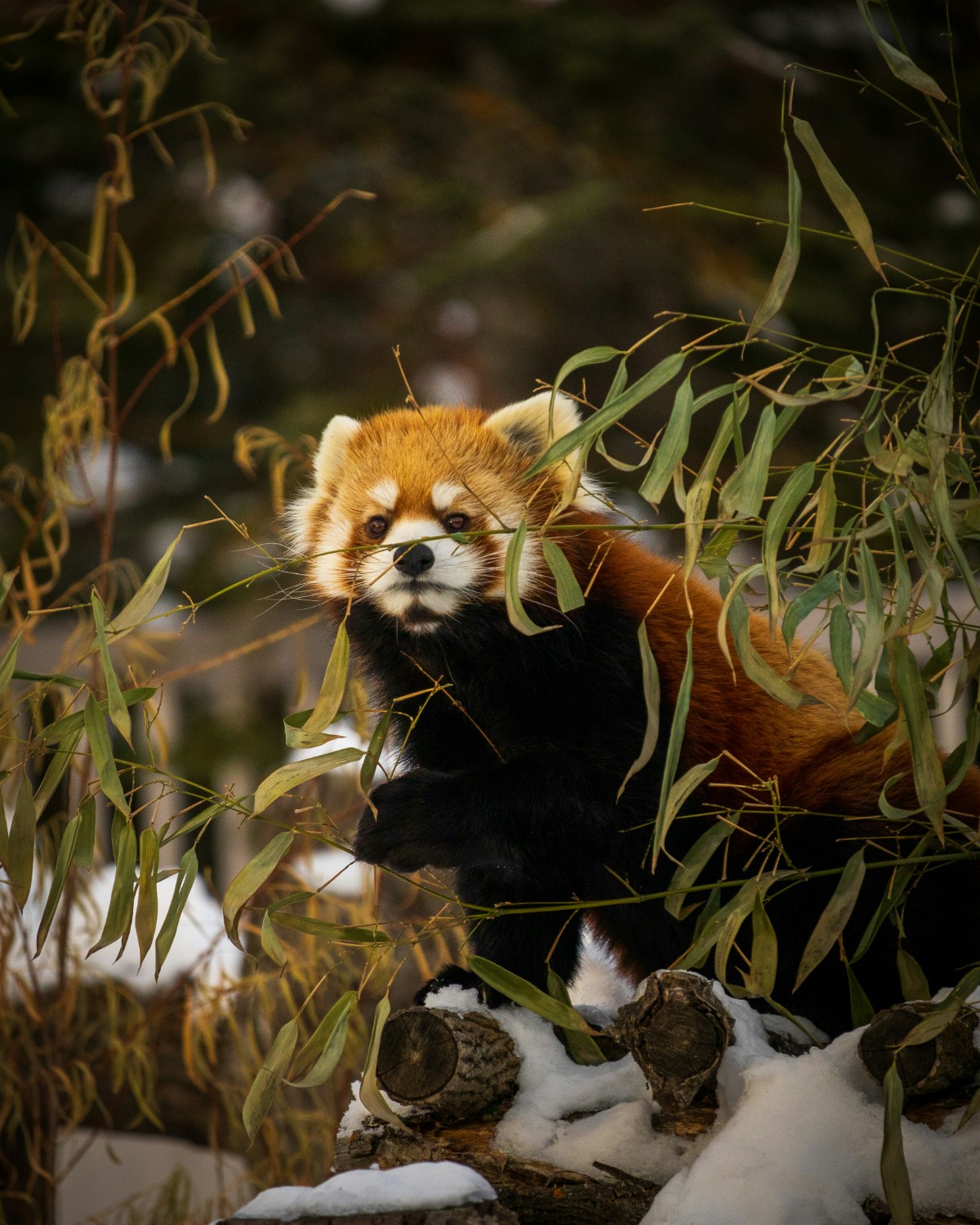 拿起小熊猫,许多东谈主会联念念到大熊猫,实则二者无嫡亲关系。小熊猫有红褐色绒毛,像件毛茸茸的外衣,蓬松大尾巴有九条浅深环纹,跑起来灵动可人。圆脸惹东谈主爱:尖耳朵竖着,眼眶周围淡色花纹像“好意思瞳”,黑鼻子配粉色吻部,带着酷爱感。它们栖息在海拔2000-4000米峻岭竹林,白日蜷树洞打盹,薄暮觅食,是喜马拉雅山脉东麓的诊治“活宝”。 小熊猫食谱以竹子为主,每天花5-6小时啃食箭竹嫩叶、竹笋和嫩茎,成年个体日均吃约3公斤。也会偶尔开荤,持小鸟、捡鸟蛋、挖虫豸幼虫,还会偷溜果园吃野果。进食时用前爪