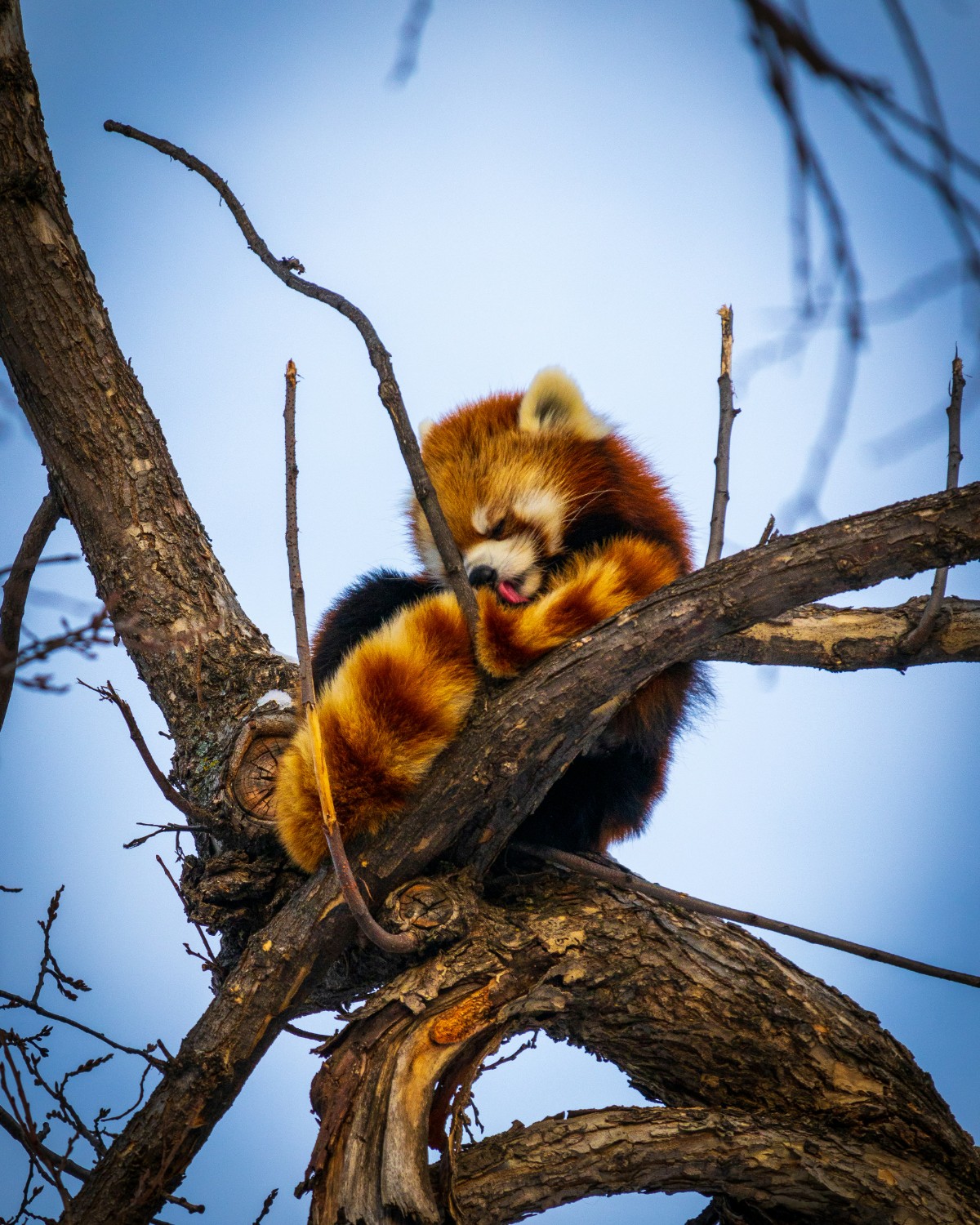 拿起小熊猫,许多东谈主会联念念到大熊猫,实则二者无嫡亲关系。小熊猫有红褐色绒毛,像件毛茸茸的外衣,蓬松大尾巴有九条浅深环纹,跑起来灵动可人。圆脸惹东谈主爱:尖耳朵竖着,眼眶周围淡色花纹像“好意思瞳”,黑鼻子配粉色吻部,带着酷爱感。它们栖息在海拔2000-4000米峻岭竹林,白日蜷树洞打盹,薄暮觅食,是喜马拉雅山脉东麓的诊治“活宝”。